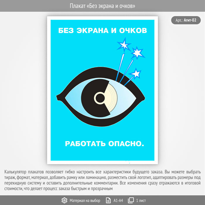 Плакат «Без экрана и очков» (Агит-02, 1 лист) в Видном купить