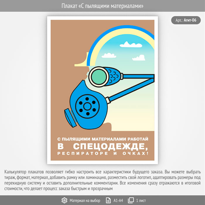 Плакат «С пылящими материалами» (Агит-06, 1 лист) в Видном купить