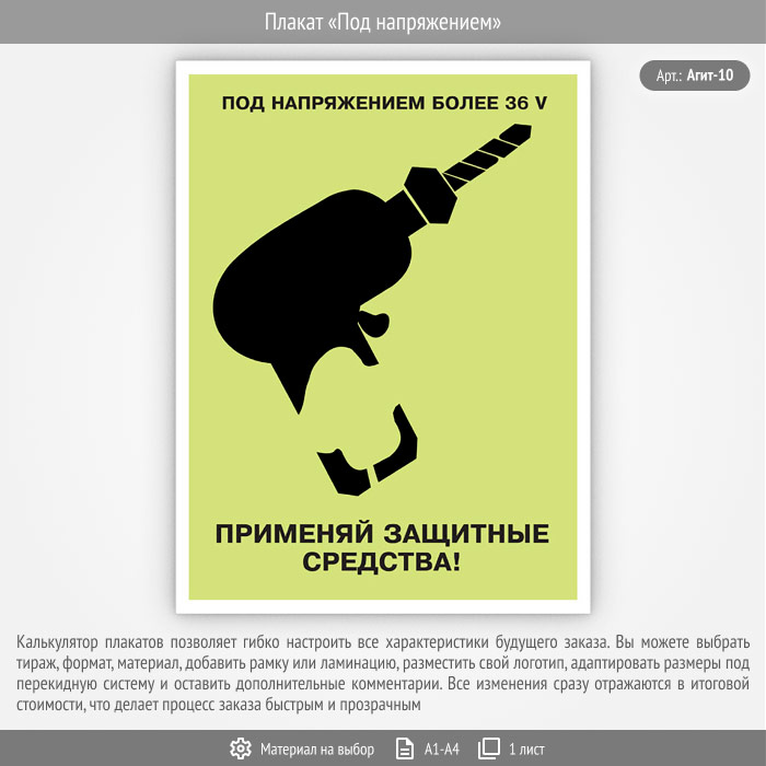 Плакат «Под напряжением» (Агит-10, 1 лист) в Видном купить