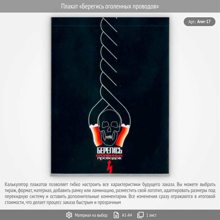 Плакат «Берегись оголенных проводов» (Агит-17, 1 лист) в Видном купить