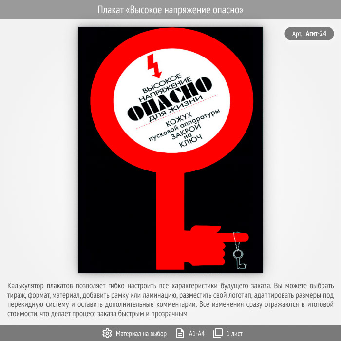 Плакат «Высокое напряжение опасно» (Агит-24, 1 лист) в Видном купить