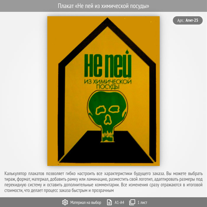 Плакат «Не пей из химической посуды» (Агит-25, 1 лист) в Видном купить