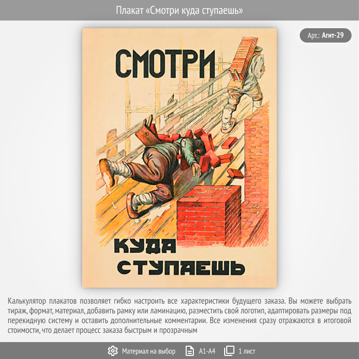 Плакат «Смотри куда ступаешь» (Агит-29, 1 лист) в Видном купить