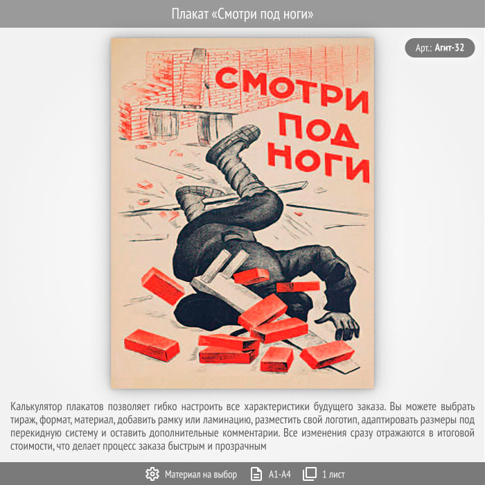 Плакат «Смотри под ноги» (Агит-32, 1 лист) в Видном купить