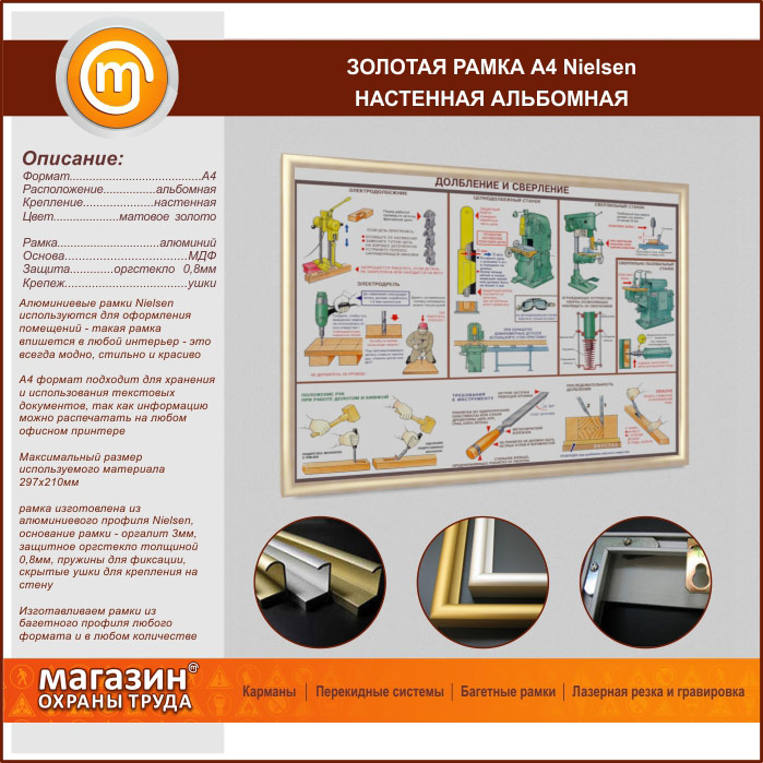 Багетная настенная рамка «Nielsen» А4 формата, альбомная, матовое золото в Видном купить