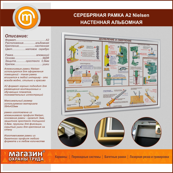 Багетная настенная рамка «Nielsen» А2 формата, альбомная, матовое серебро в Видном купить