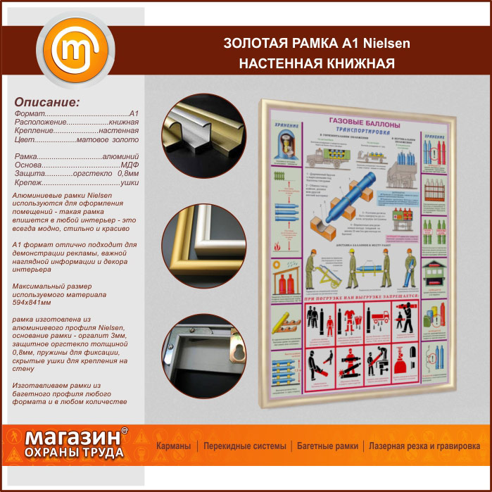 Багетная настенная рамка «Nielsen» А1 формата, книжная, матовое золото в Видном купить