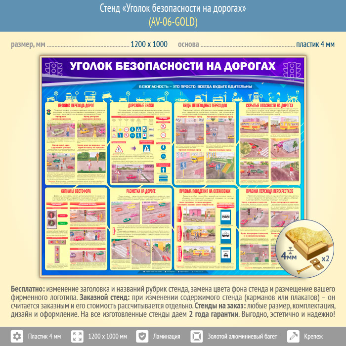 Стенд «Уголок безопасности на дорогах» (AV-06-GOLD) в Видном купить