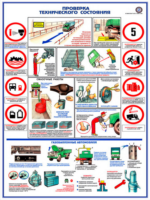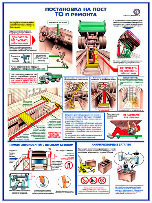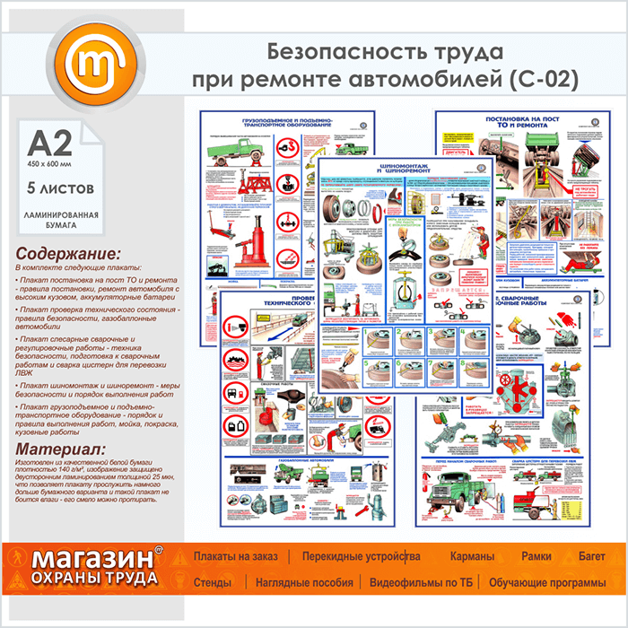 Плакат «Техника безопасности при ремонте автомобилей» (С-02, ламинированная бумага, А2, 5 листов) в Видном купить