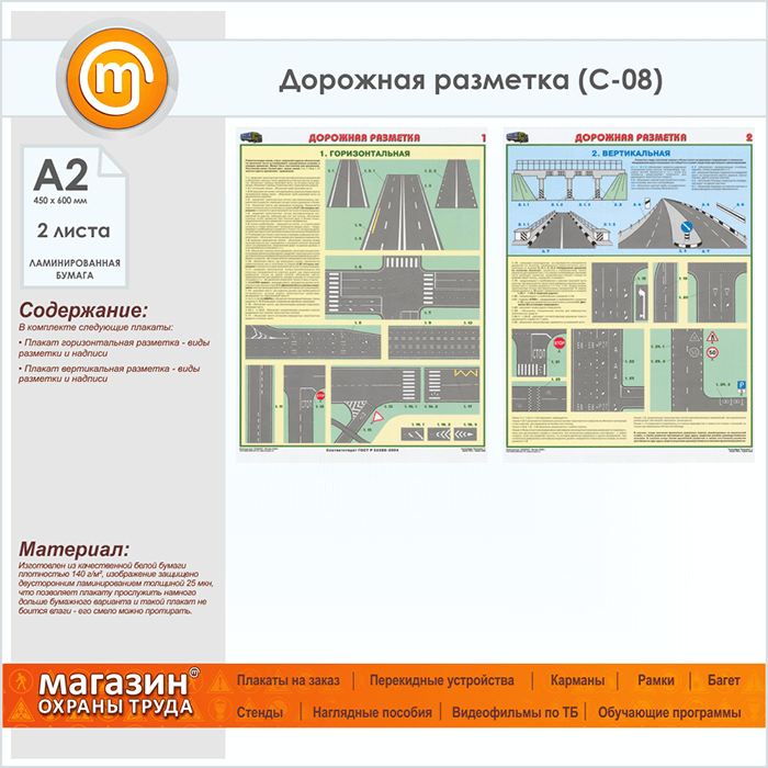 Плакаты «Дорожная разметка» (С-08, ламинированная бумага, А2, 2 листа) в Видном купить