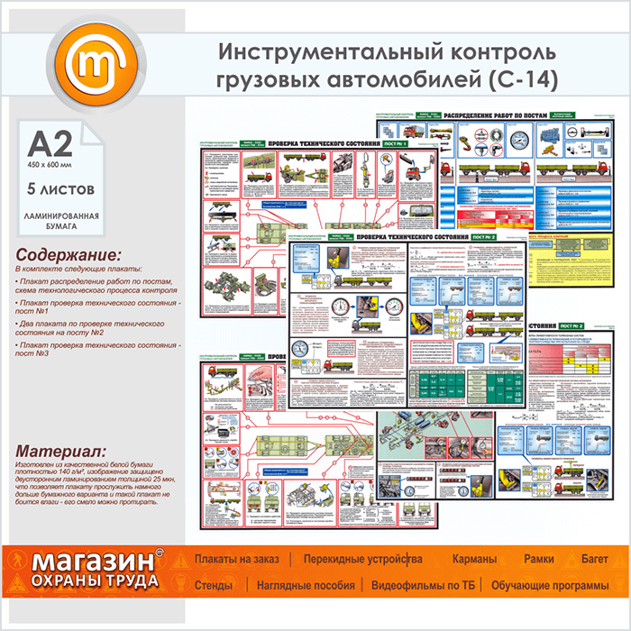 Плакаты «Инструментальный контроль грузовых автомобилей» (С-14, ламинированная бумага, А2, 5 листов) в Видном купить