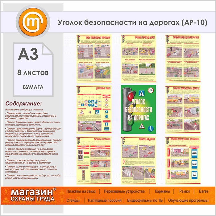 Плакаты «Уголок безопасности на дорогах» (АР-10, бумага, А3, 8 листов) в Видном купить