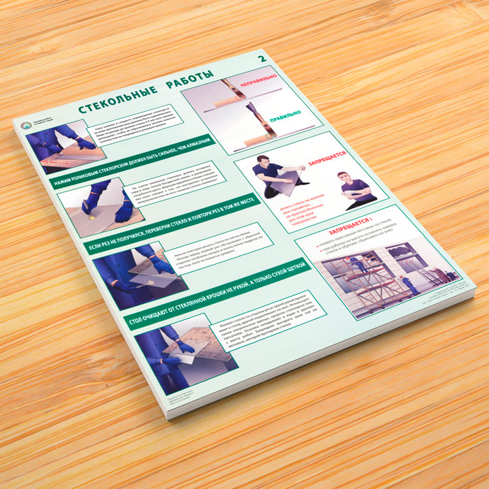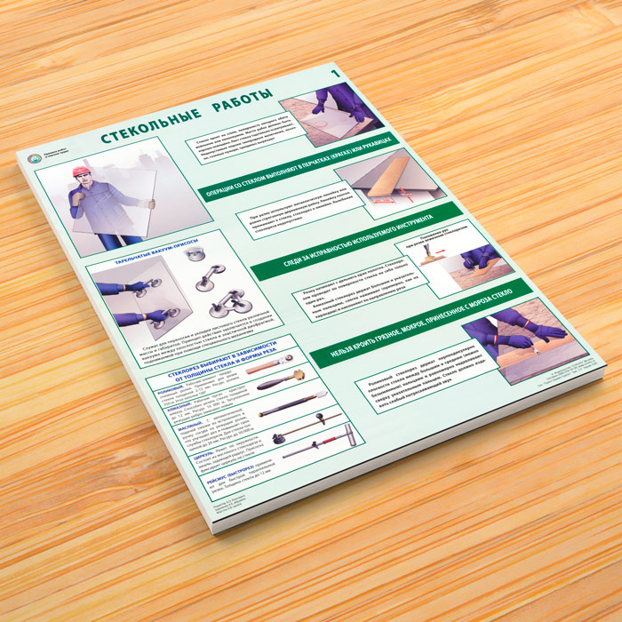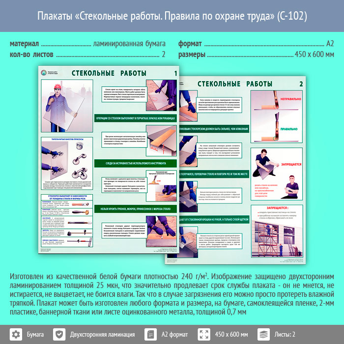 Плакаты «Стекольные работы. Правила по охране труда» (С-102, ламинированная бумага, А2, 2 листа) в Видном купить