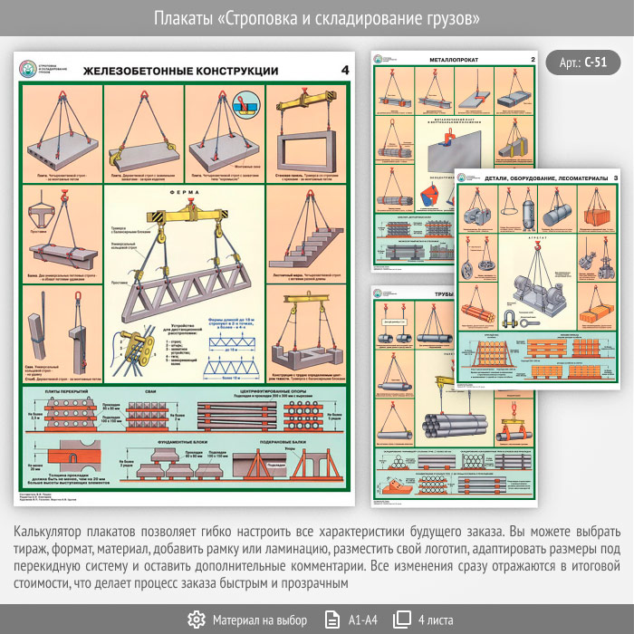 Плакаты «Строповка и складирование грузов» (С-51, 4 листа) в Видном купить