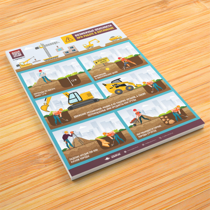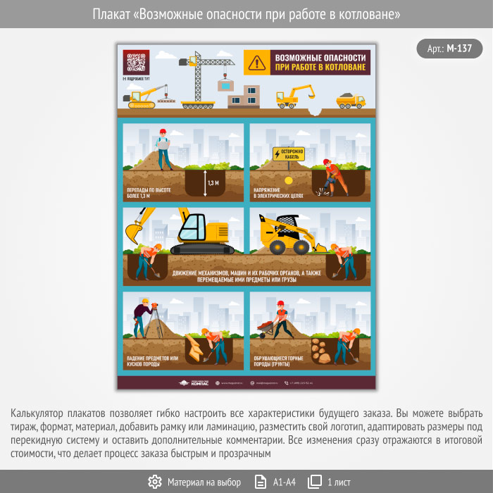 Плакат «Возможные опасности при работе в котловане» с QR (М-137, 1 лист) в Видном купить