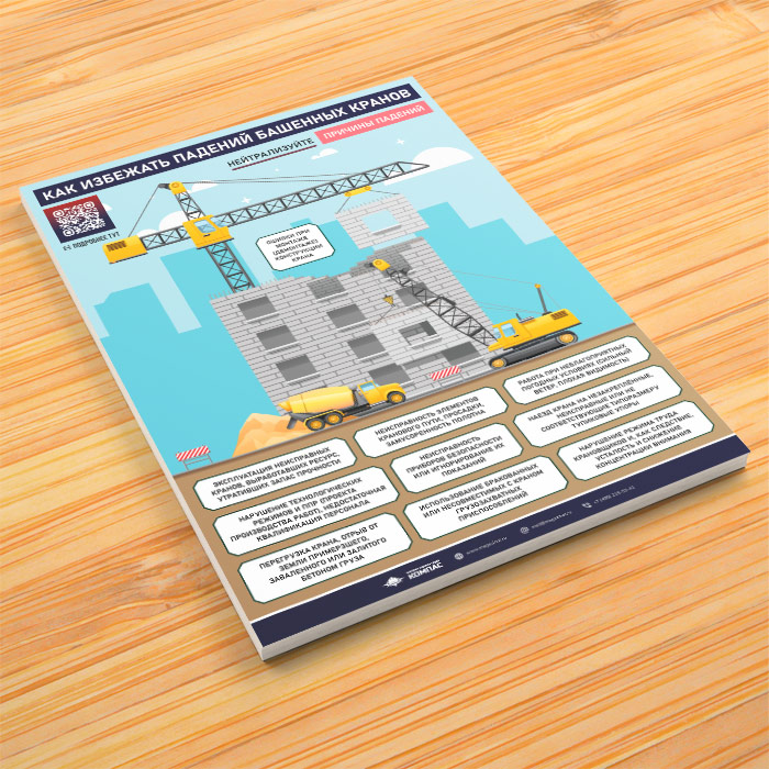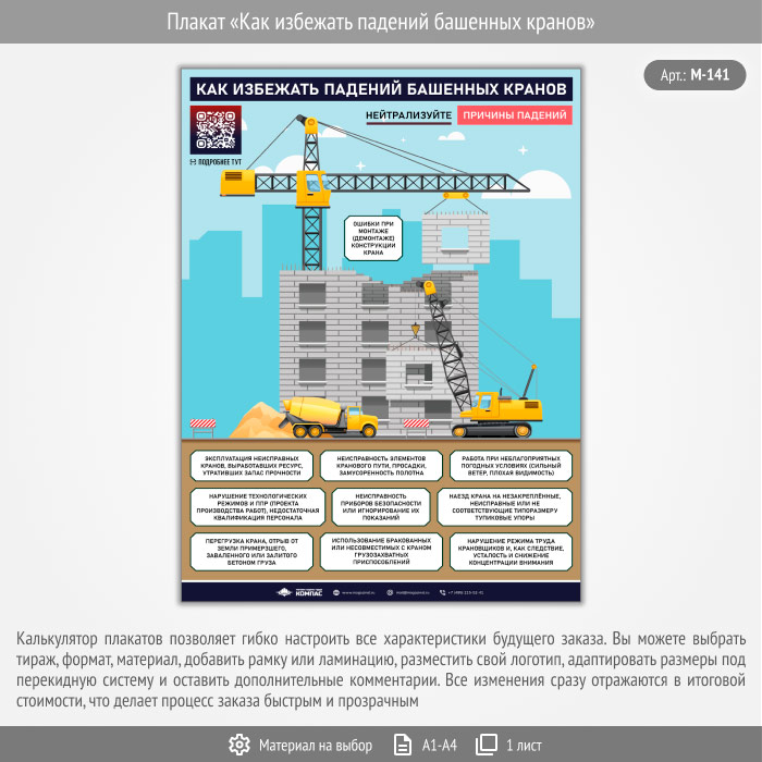 Плакат «Как избежать падений башенных кранов» с QR (М-141, 1 лист) в Видном купить