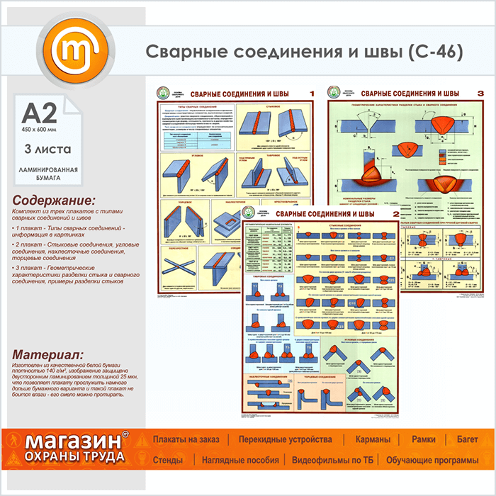 Плакаты «Сварные соединения и швы» (С-46, ламинированная бумага, А2, 3 листа) в Видном купить