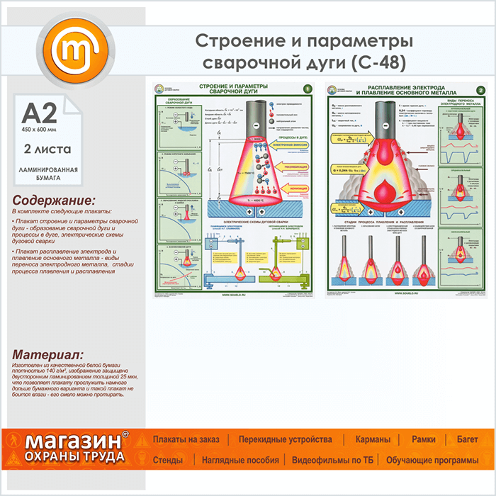 Плакаты «Строение и параметры сварочной дуги» (С-48, ламинированная бумага, А2, 2 листа) в Видном купить