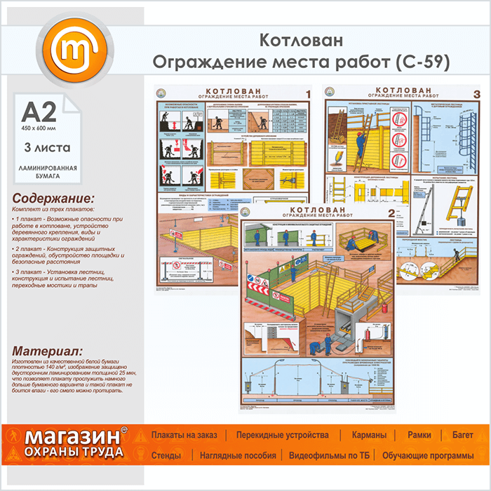 Плакаты «Котлован. Ограждение места работ» (С-59, ламинированная бумага, А2, 3 листа) в Видном купить