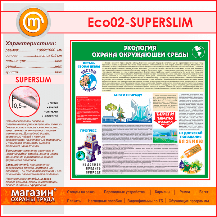 Стенд «Экология - Охрана окружающей среды» (ECO-02-SUPERSLIM) в Видном купить
