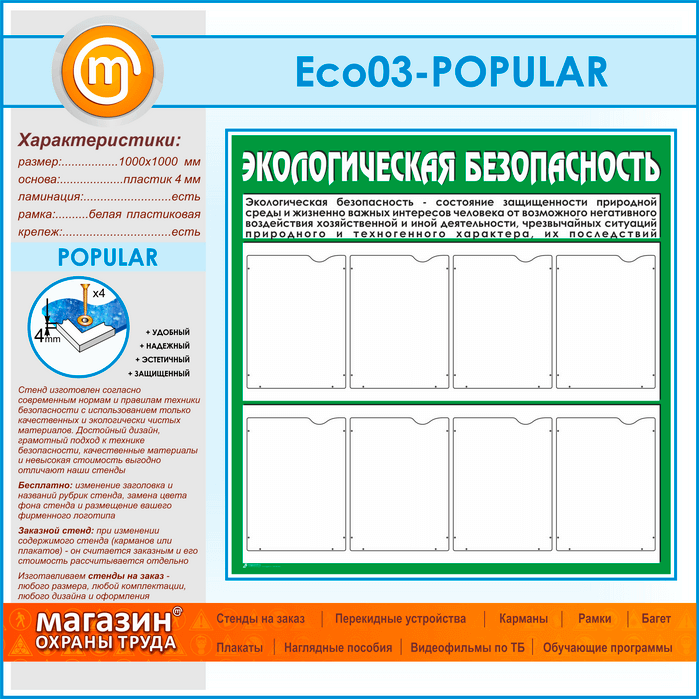Стенд «Экологическая безопасность» с 8 карманами (ECO-03-POPULAR) в Видном купить