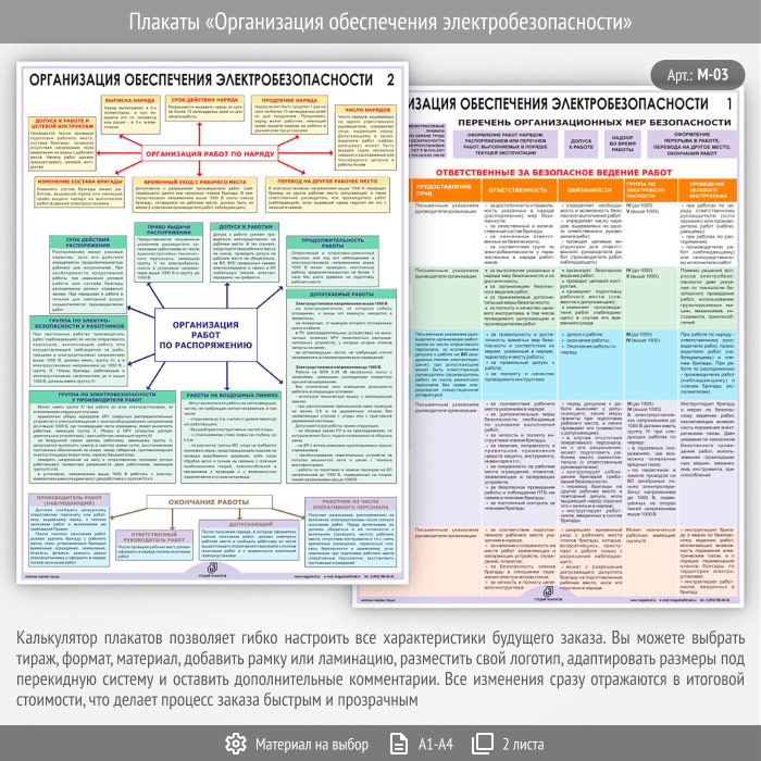 Плакаты «Организация обеспечения электробезопасности» (М-03, 2 листа) в Видном купить