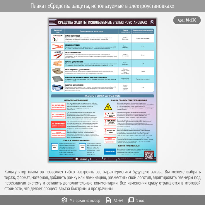 Плакат «Средства защиты, используемые в электроустановках» с QR (М-130, 1 лист) в Видном купить