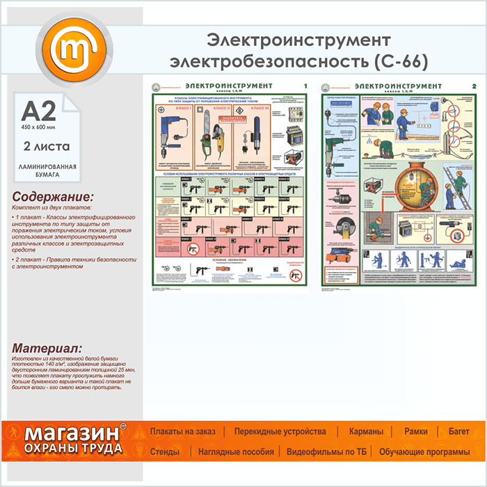 Плакаты «Электроинструмент - электробезопасность» (С-66, ламинированная бумага, А2, 2 листа) в Видном купить