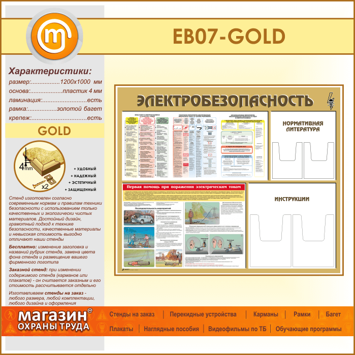Стенд «Электробезопасность» с 4 объемными карманами (EB-07-GOLD) в Видном купить