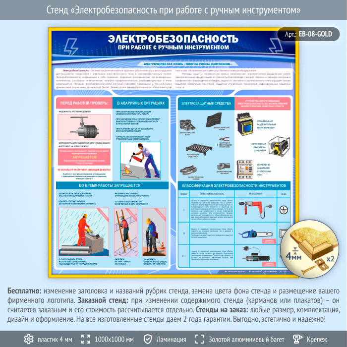Стенд «Электробезопасность при работе с ручным инструментом» (EB-08-GOLD) в Видном купить