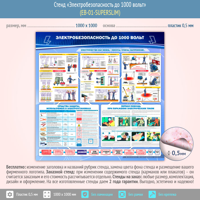 Стенд «Электробезопасность до 1000 вольт» (EB-01-SUPERSLIM) в Видном купить
