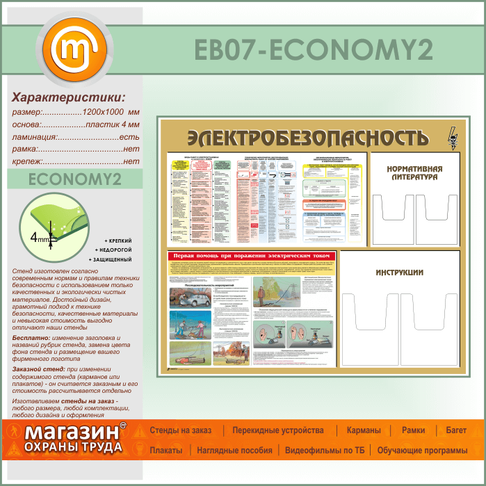 Стенд «Электробезопасность» с 4 объемными карманами (EB-07-ECONOMY2) в Видном купить