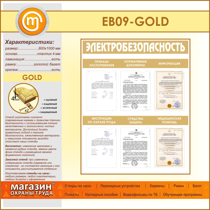 Стенд «Электробезопасность» с 6 карманами (EB-09-GOLD) в Видном купить