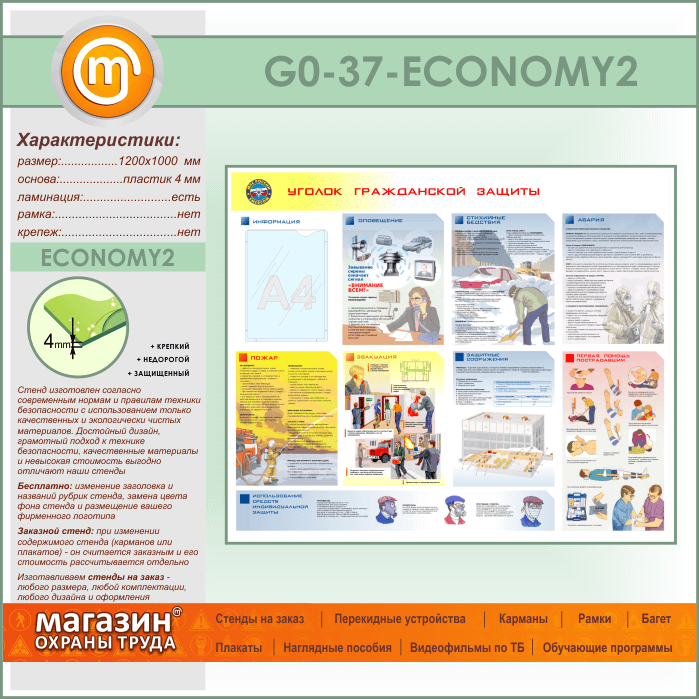 Стенд «Уголок гражданской защиты» с карманом (GO-37-ECONOMY2) в Видном купить