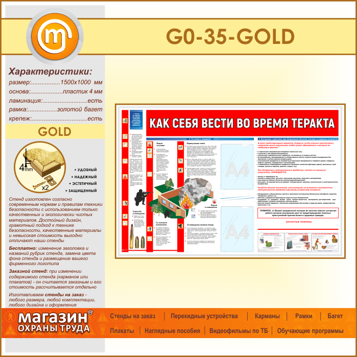 Стенд «Как себя вести во время теракта» c 2 карманами (GO-35-GOLD) в Видном купить