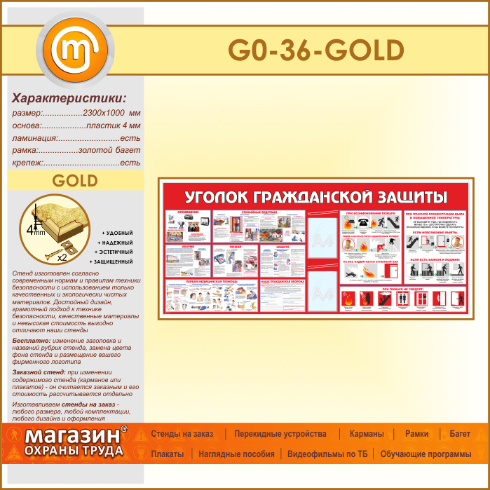 Стенд «Уголок гражданской защиты» c 2 карманами (GO-36-GOLD) в Видном купить