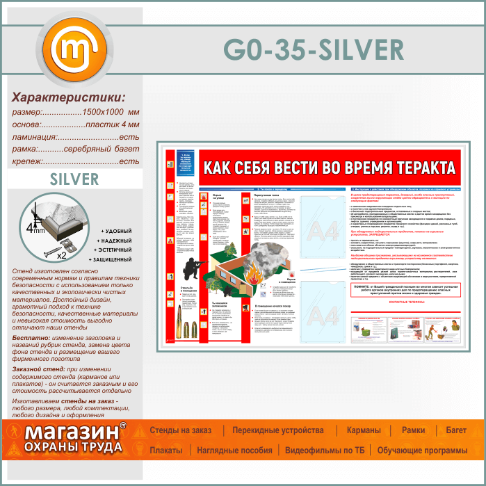 Стенд «Как себя вести во время теракта» c 2 карманами (GO-35-SILVER) в Видном купить