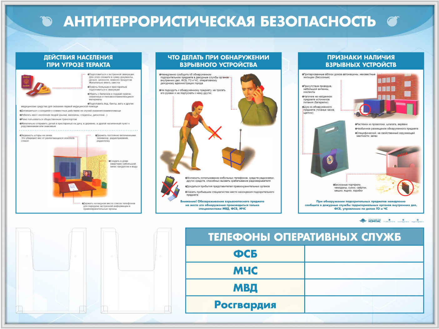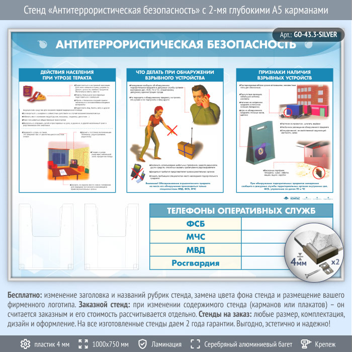 Стенд «Антитеррористическая безопасность» с 2-мя глубокими А5 карманами (GO-43.3-SILVER) в Видном купить