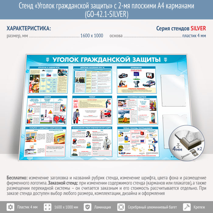 Стенд «Уголок гражданской защиты» с 2-мя плоскими А4 карманами (GO-42.1-SILVER) в Видном купить