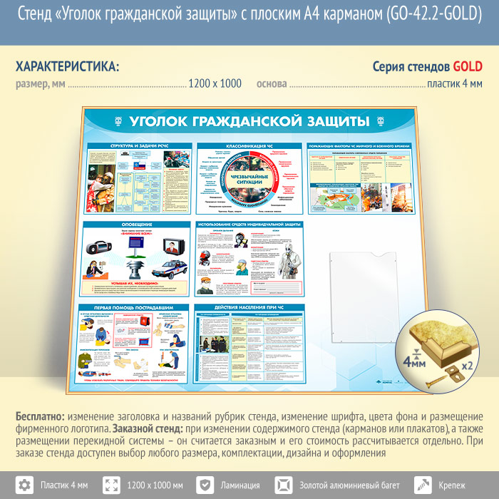 Стенд «Уголок гражданской защиты» с плоским А4 карманом (GO-42.2-GOLD) в Видном купить