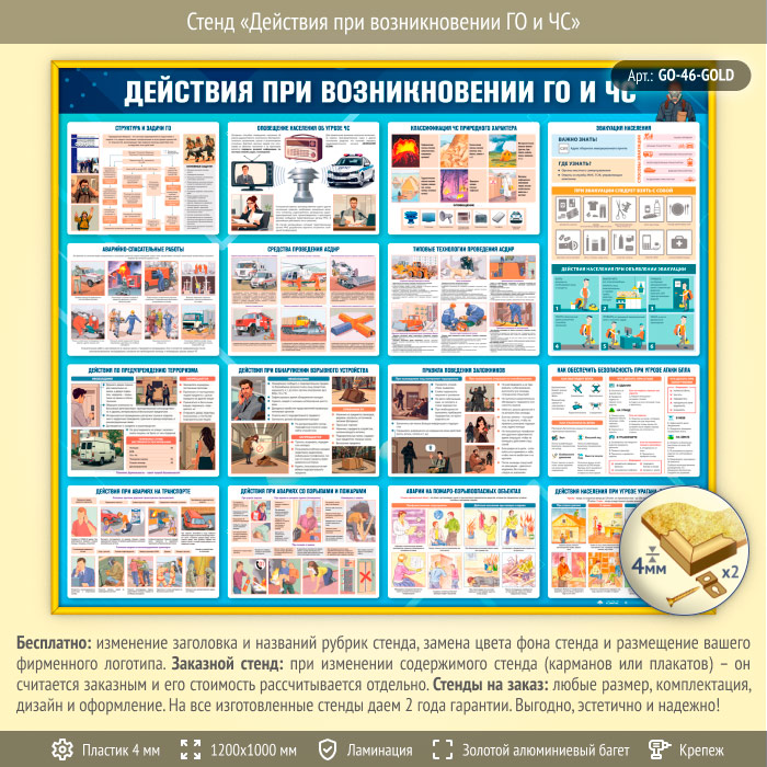 Стенд «Действия при возникновении ГО и ЧС» (GO-46-GOLD) в Видном купить