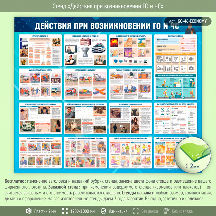 Стенд «Действия при возникновении ГО и ЧС» (GO-46-ECONOMY) в Видном купить