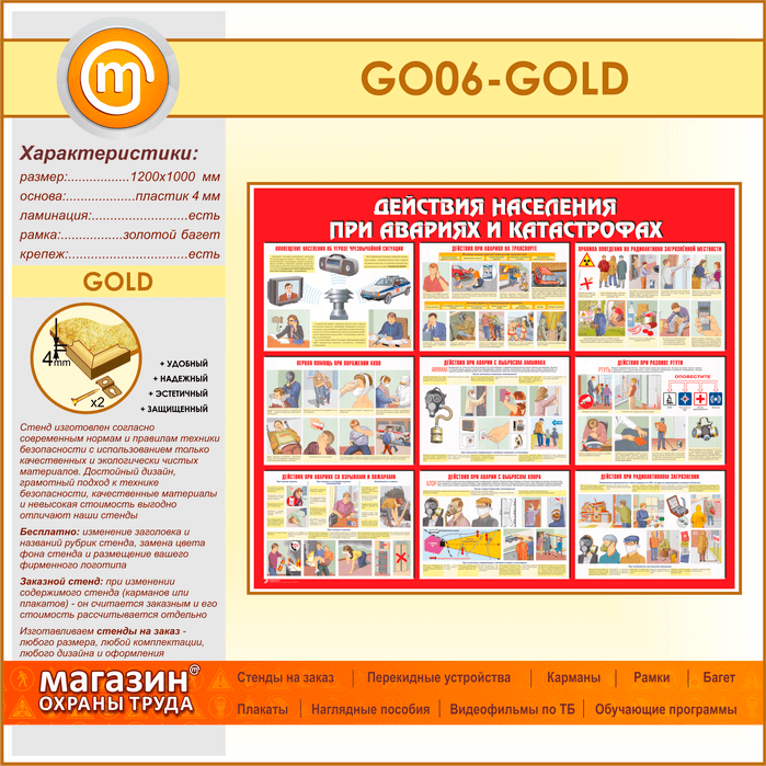 Стенд «Действия населения при авариях и катастрофах» (GO-06-GOLD) в Видном купить