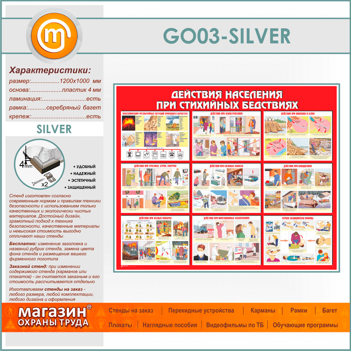 Стенд «Действия населения при стихийных бедствиях» (GO-03-SILVER) в Видном купить