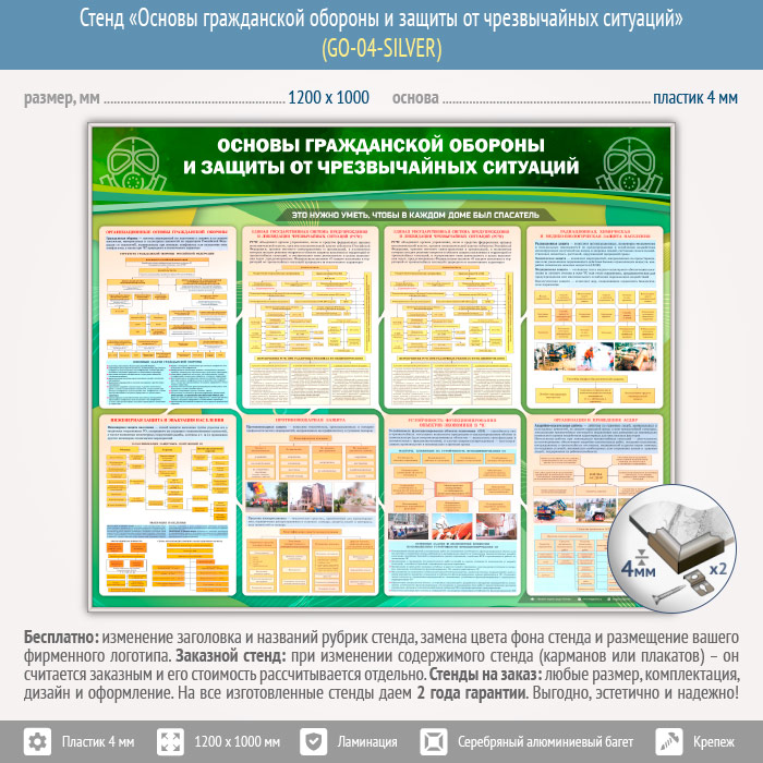 Стенд «Основы гражданской обороны и защиты от чрезвычайных ситуаций» (GO-04-SILVER) в Видном купить