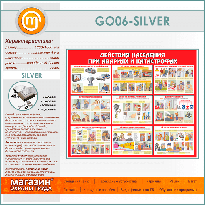 Стенд «Действия населения при авариях и катастрофах» (GO-06-SILVER) в Видном купить