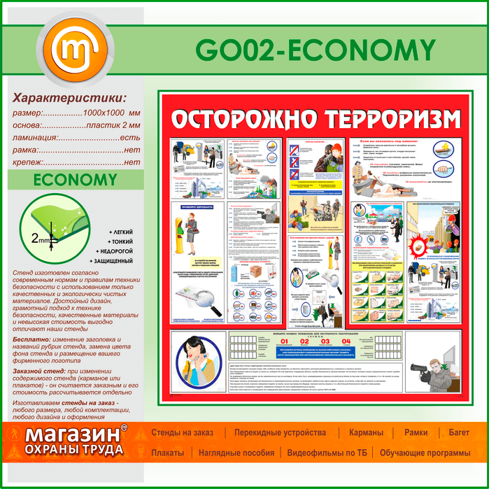 Стенд «Осторожно терроризм!» (GO-02-ECONOMY) в Видном купить