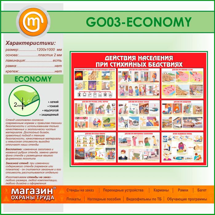 Стенд «Действия населения при стихийных бедствиях» (GO-03-ECONOMY) в Видном купить