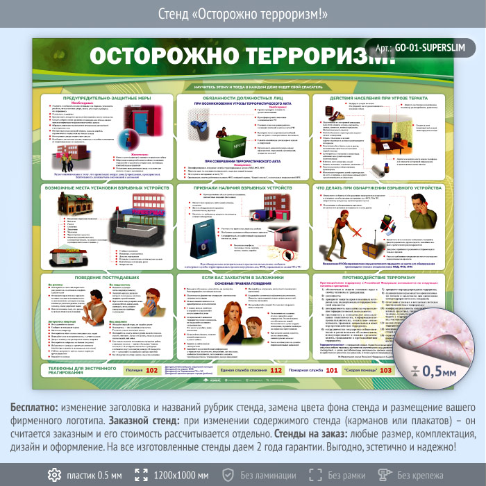 Стенд «Осторожно терроризм!» (GO-01-SUPERSLIM) в Видном купить