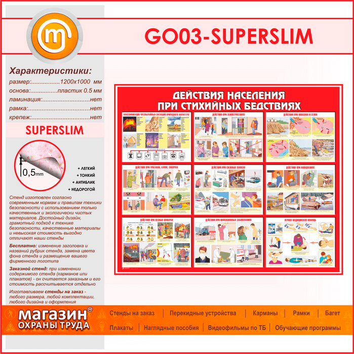 Стенд «Действия населения при стихийных бедствиях» (GO-03-SUPERSLIM) в Видном купить